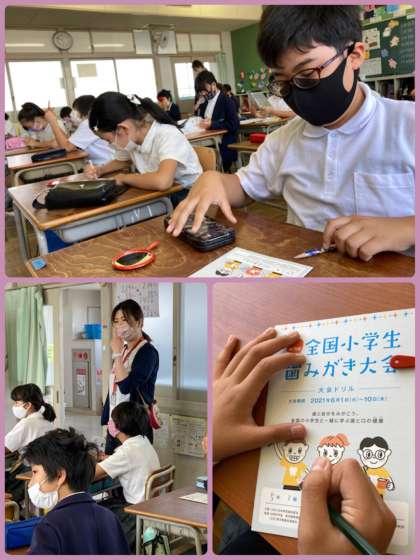 5年生が歯みがき大会にのぞみました。自分の歯を鏡で見ながら、動画で重要事項をチェックしていきました。今年度は感染症対策のため、全員一斉にマスクを外しての歯みがきはできませんでしたが、学習したことを毎日の歯みがきに活かしてほしいと思います。