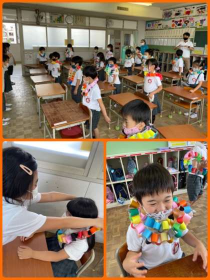 最後に、2年生に終了認定首飾りもかけてもらい、とてもうれしそうな表情の1年生が印象的でした。