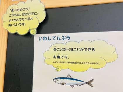 今日のいわしてんぷらもしっかりとよくかんでを意識して、チャレンジできていました。