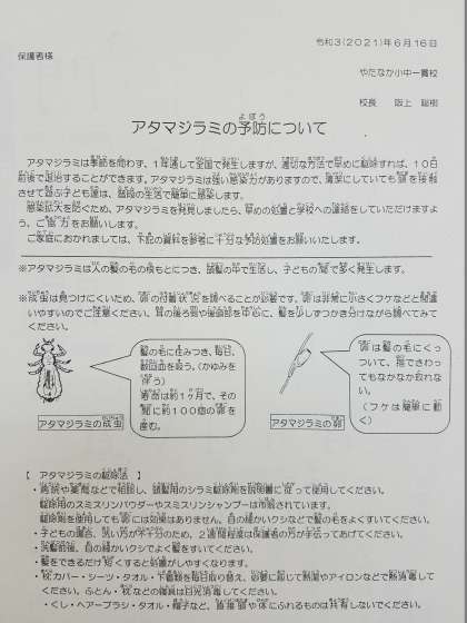 プール水泳の授業が始まります。本日、下記の手紙を子ども達が持って帰ります。