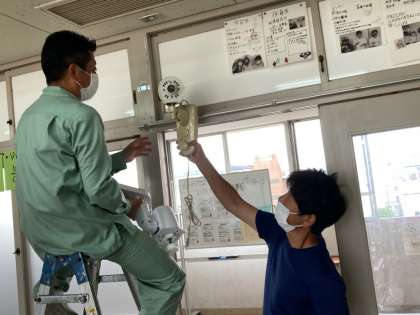 管理作業員さんが、壊れた扇風機を取り換えてくださいました。今後特に、冷房と扇風機の併用で、暑い夏でも快適な空間で学習が進められたらと思います。