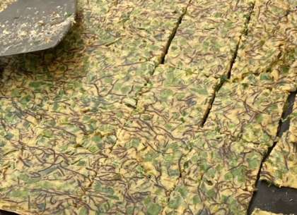(上)ホテルパンで焼き上げたヒラヤーチーを切り分けます。