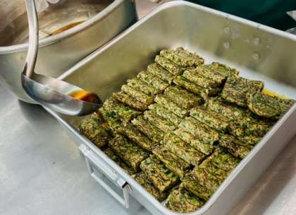 沖縄県産のもずく入りヒラヤーチーをおいしくいただきました。