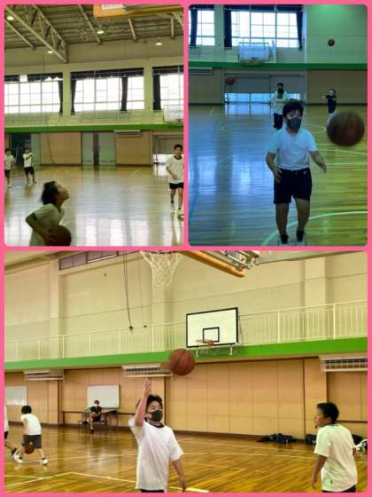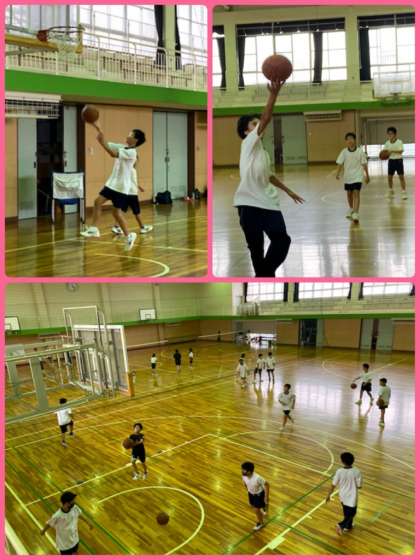 バスケットボール部は、新入部員もたくさん増え、精力的に活動しています。シュートやドリブルの精度を高める練習から実戦形式まで、各自が目標をもちながら取り組んでいます。