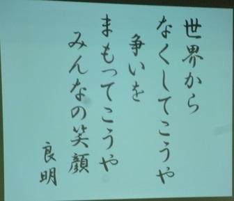 9年生は、8年生で取り組んだ広島平和学習、今年取り組んだ長崎平和学習について発表しました。全員で平和への願いを込めて、うたを詠みました。