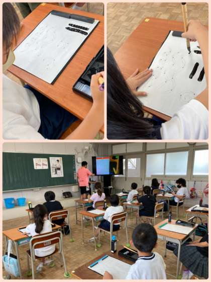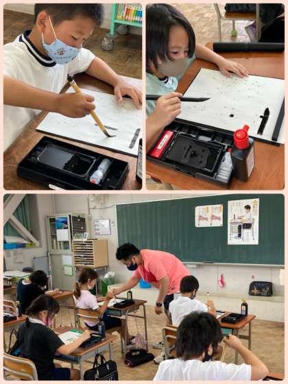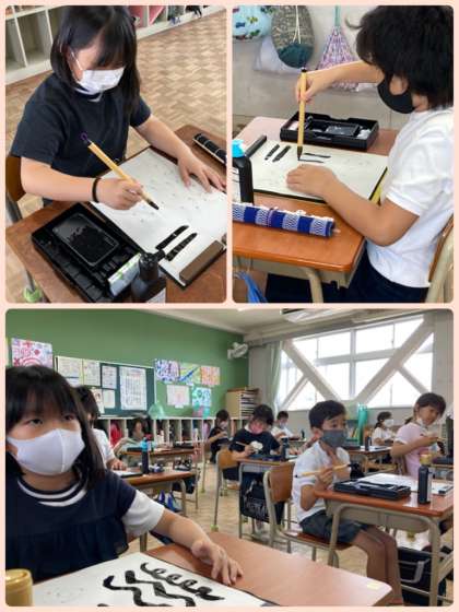 3年生は、初めての習字の学習にのぞみました。筆の持ち方を確認して、ひじを立てながら、まずはまっすぐな線から書いていきました。集中して、ゆっくりと筆を進めていきました。様々な技法を習得して、これから色々な字を書けるようになりましょう。