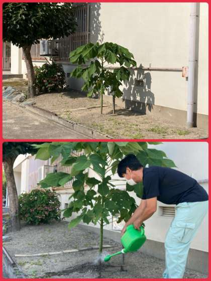 やたなか小中一貫校のシンボルの一つとなっていけるように、今後も大切に水やりと観察を続けていきます。