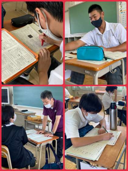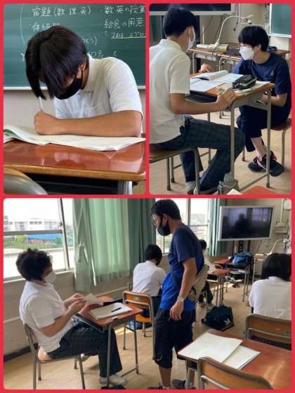 本日、中学部の夏季活動で宿題チェックがありました。難しかった問題などを、先生と確認していきました。久しぶりの登校でしたが、元気な顔を見ることができてよかったです。