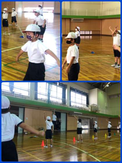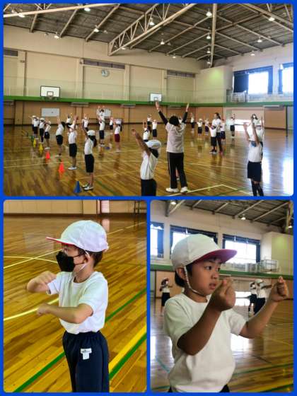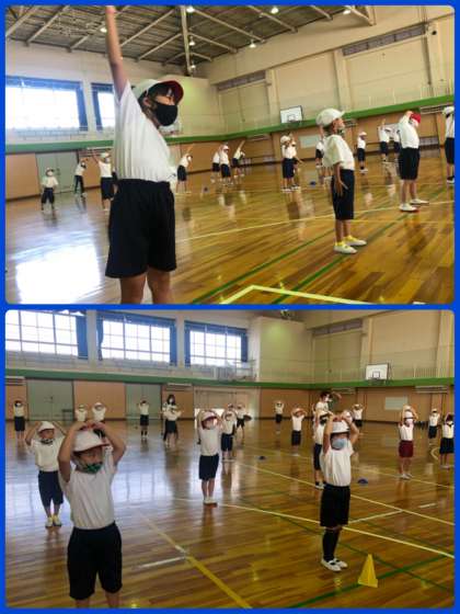 1・2年生は、体育祭に向けての練習を始めました。団体演技は、リズムにのった動きを高めながら進めていきたいと思います。体育祭本番で、最高の演技をお見せできるようにがんばって練習します。