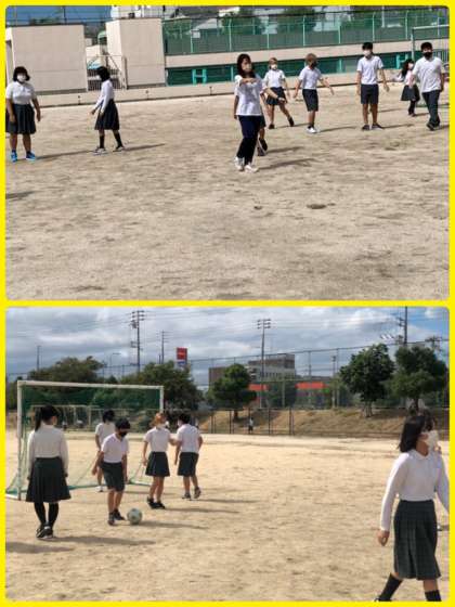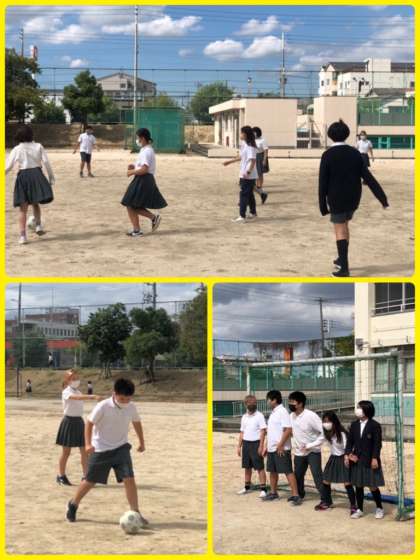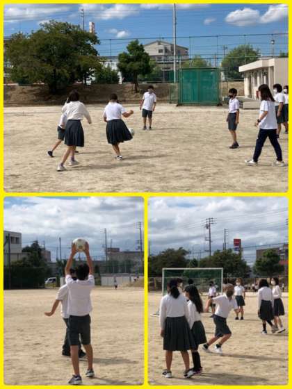 6年生は、みんな遊びでサッカーをしました。体育祭まで一週間をきり、演技や競技の練習の集大成に向けても、クラスの一体感を高めることができました。サッカーを習っている子が、苦手な子にアドバイスする姿は、見ていてとても微笑ましいです。