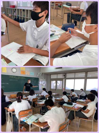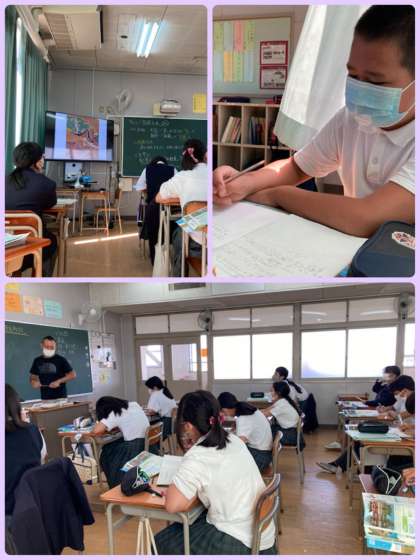 7年生の社会は、国風文化の文学や、住まいとくらしの特徴をまとめ、現代とのつながりも意識させながら学習を進めています。6年生で学んだ社会の歴史から発展させ、深い学びにつなげることができ、生徒の充実した表情が見られているのが印象的です。