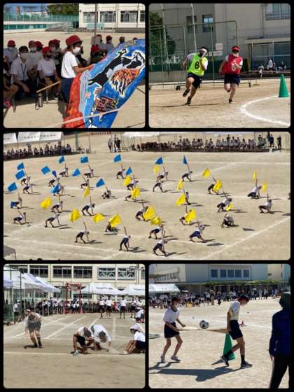快晴の空の下、体育祭を行いました。音楽部の演奏にあわせて入場行進したあと、開会式では小中学生の代表による気持ちのこもった選手宣誓がありました。小学部の団体演技や、中学部のバラエティーリレーなど、見ごたえたっぷりの演技や競技で、それぞれの持てる力を出し切りました。