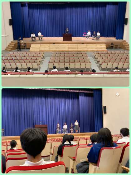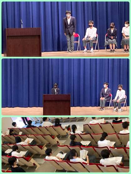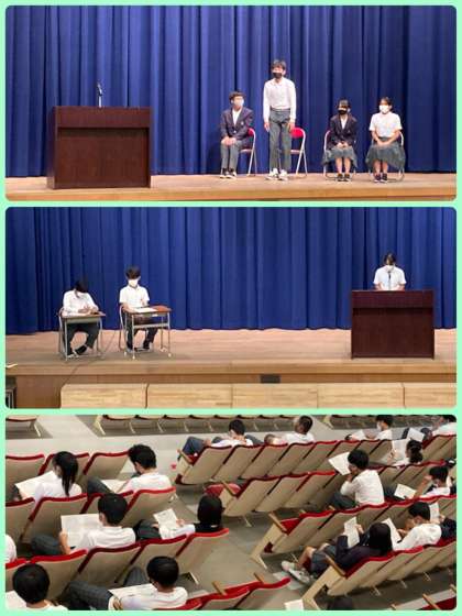 後期生徒会の立ち合い演説会を行いました。今後、どんな学校にしていきたいかを自分たちの言葉で堂々と伝えてくれました。それぞれがしっかりビジョンをもっており、聞いている生徒も具体案が分かりやすかったと思います。