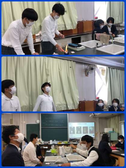 8年生の理科で、雲のでき方について学習しました。上昇気流ができる原因を調べるため、紅茶のティーパックを燃やして空気を温めた時の変化を見ました。ティーパックが燃え終わった後、自然と宙に舞い上がる姿を見て、理科室中に歓声があがっていました。