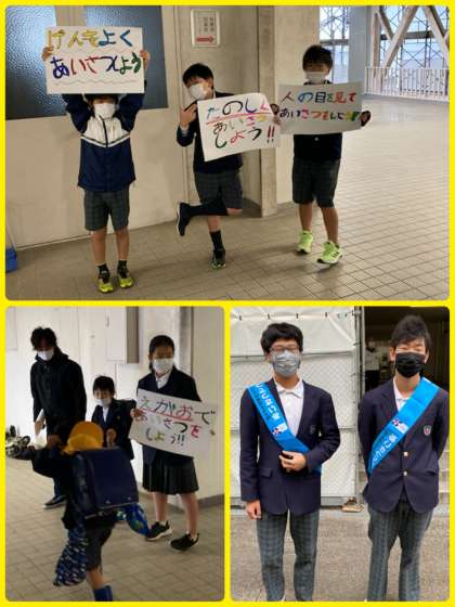 今週は、あいさつ週間です。児童生徒会を中心に、元気なあいさつでみんなの登校をむかえてくれています。一日のスタートを気持ちよくきれるよう、ご家庭でもあいさつを習慣づけてほしいと思います。