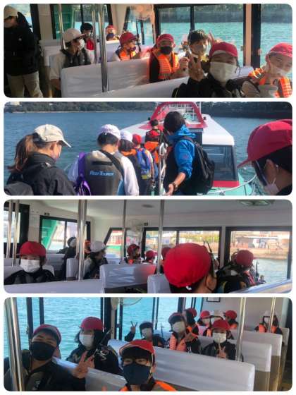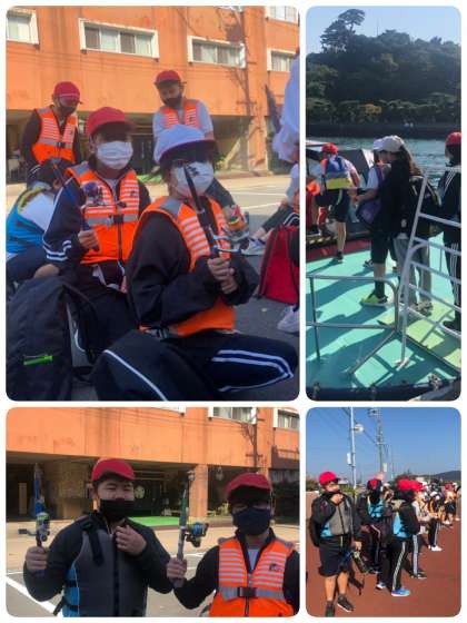 チャーター船で菅島に着きました。釣竿を持って、魚つりだ〜(^-^)v