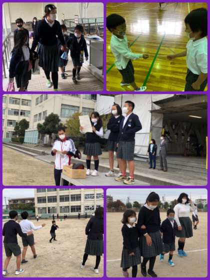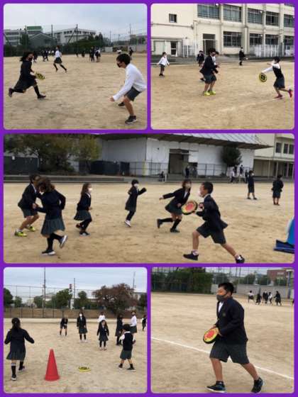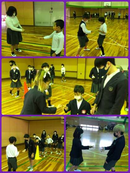 小学部は毎週木曜日の朝に、たてわり班で児童集会を行っています。先週はドーンじゃんけん、今週はフリスビーおにごっこをしました。6年生が1年生に優しく声をかけ、各班で協力して楽しく活動し、充実した異学年交流の時間となっています。司会の集会委員も上手に説明しています。