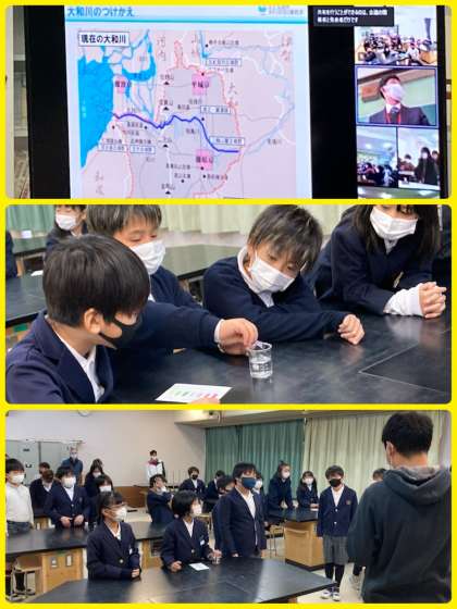 4年生は、大和川の概要や歴史、環境について矢田の4つの小学校をオンラインでつないで学習しました。学校ごとに、指定された水の種類でパックテストの実験をしました。大和川がきれいになっていることを4つの小学校のみんなで共有でき、実りあるオンライン授業となりました。