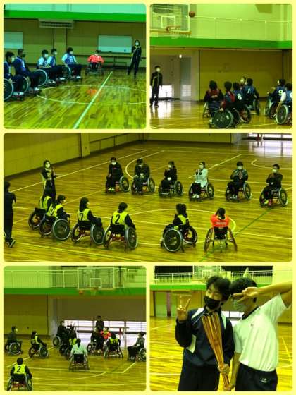 8年生は、日本生命のバスケットボールチームの方々をお招きして、体験学習を行いました。競技用車いすの特徴を学んだあと、ミニゲームを行いました。見事にシュートを決めた生徒もいて、大いに盛り上がりました。