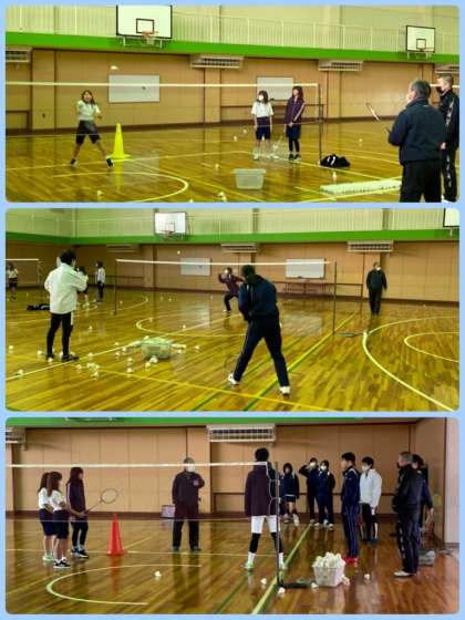 バドミントン部は、小学生も中学生も冬休みの練習をがんばっています。前後左右へのフットワークの強化練習や、防御力アップへのレシーブ練習など、基礎練習から発展メニューまでそれぞれに合った練習方法で学んでいます。