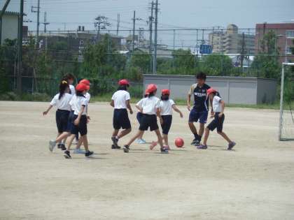 セレッソ大阪のコーチをお招きし、全校児童対象に体力向上に向けたサッカーの授業を行いました。子どもたちは目を輝かしながらコーチの指導に夢中でした。子どもたちの感想の中には、「できないことがあってもやさしく教えてくれた」「とても授業がわかりやすかった」「楽しく色々なことを学べるのでとてもよい授業だった」などの意見が多く、普段運動が苦手な児童にも笑顔がみられとても充実した活動となりました。女性のコーチの方も来られていたので女の子たちもいきいきと活動することができました。この活動を通して運動の楽しさを少しでも学んでくれたのではないかと思います。