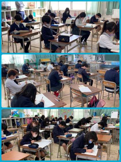 2〜8年生までの全児童生徒と、9年生の希望者による漢字検定を行いました。3学期に入ってから、日々の復習や問題プリントなどで、受検級対策に取り組んできました。基礎基本の学力の定着を図るとともに、達成感を味わい、自己肯定感と学習意欲の向上につなげられたらと思っております。結果は後日、合格証書とともに届きます。