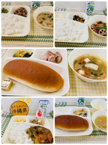 27日 鶏肉のオイスターソース焼き、ワンタンの皮ととうふのスープ、チンゲンサイとコーンの中華あえ、コッペパン、バター、牛乳