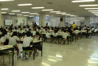 今日から2学期の給食が始まりました。やたなか小中一貫校の小学生は、ランチルームで食べます。給食当番がクラスの友だちの給食を配膳してくれます。そして、みんなで声を合わせて「いただきます」。いつも、おいしい給食を作ってくれる給食調理員さんに感謝!みんな楽しそうに食べていました。