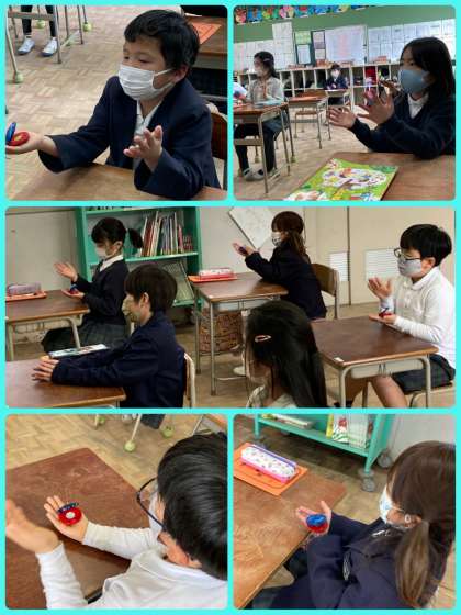 2年生は音楽の授業で、色々な拍に合わせて楽器をたたいたり、体全体で表現したりしました。班ごとに組み合わせて、ひとつの楽曲をつくることができました。テンポをとりながら、楽しく取り組んでいる様子がうかがえました。