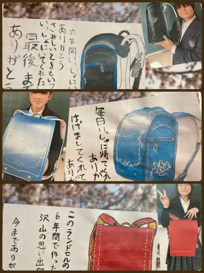 3月の図工の授業では、ランドセルを描きました。たくさんの思い出がつまったランドセルへのメッセージも添えて、少しずつ筆を進めて完成させました。今日が最後のランドセル登校となりました。明日は、たくさんの思い出をふり返りながら、大切な一日にしてほしいと思います。