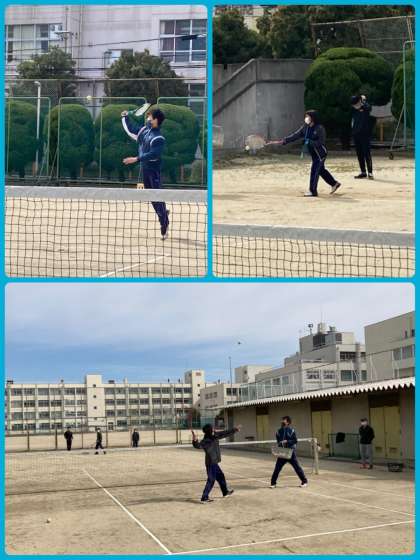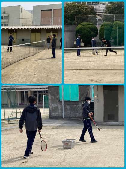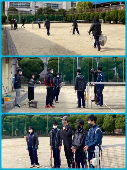4月になり、外はまだ寒暖の差はありますが、ソフトテニス部は精力的に活動しています。先日の活動では、4月11日に行われる部活動紹介の練習もしました。見事なスマッシュが決められるよう、ペアで協力して練習していきました。