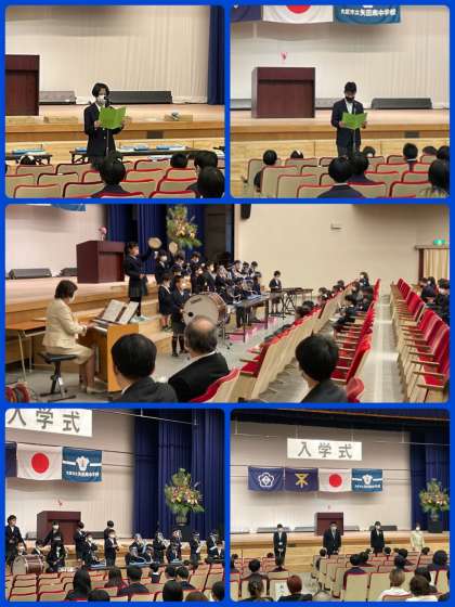 入学式を行いました。快晴の空と、満開の桜の中、期待に胸をふくらませた1年生と7年生の学校生活が始まりました。広い講堂で校長先生から、担任の先生や学年に関わる先生を発表してもらいました。一日一日を大切にして、何事にも前向きに取り組んでほしいと思います。