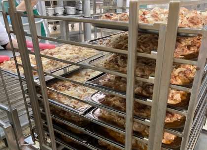 (上)豚のしょうが焼き:焼き物機からおいしそうなかおりがしています。