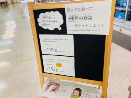 野菜をおいしく、たくさん食べられる献立で、小学校は約116g、中学校は約151gの野菜をいただきました。