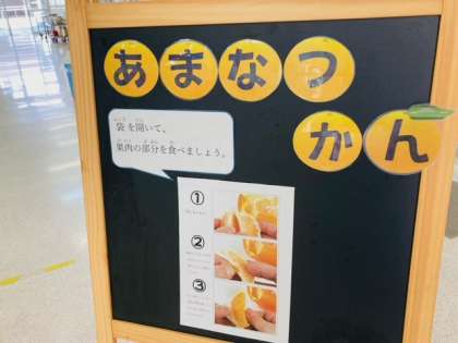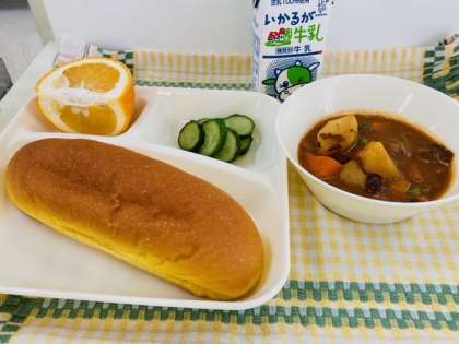 今日の献立は「ビーフシチュー、きゅうりのサラダ、あまなつかん、パンプキンパン、牛乳」でした。あまなつかんは、皮をむいてたべることやほろ苦さに苦戦する姿がありましたが、上手に食べている人や「すっぱかったけど、がんばった!」「口内炎にちょっとしみたけど、頑張って食べたから早く治ると思う。」「さっぱりしておいしかった。」といった声もありました。