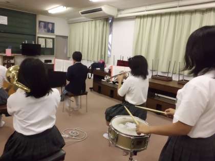 今年度になって、音楽活動にも取り組み始めました。初めて楽器を持ってから約3か月ですが、みんな一生懸命頑張っています。今は、9月14日(土)に地域で予定されている「矢田中地域福祉祭り」で演奏することを目標にがんばっています。これからの美術創作部を温かく見守っていただけたら、とてもうれしいです。