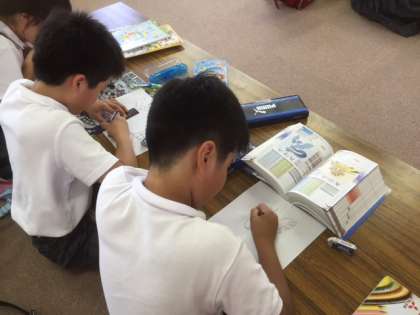 8日(月)にクラブ活動がありました。パソコンクラブでは、パソコンを使って名刺作りをしていました。自分だけの名刺が出来上がり、楽しそうです。まんがクラブでは、図書室の本や自分たちで用意したイラストを見ながら熱心に絵を描いていました。