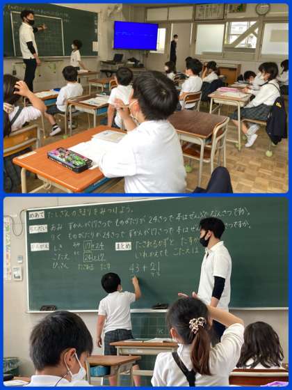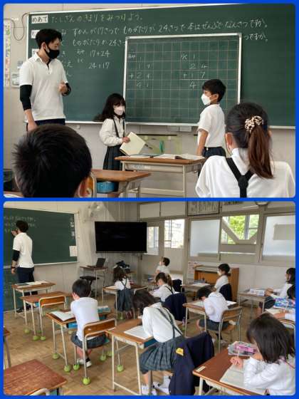 2年生は、たす数とたされる数を入れかえた時の答えはどうなるかに着目し、計算して確かめていきました。自分の考えを堂々と前で発表することもできています。