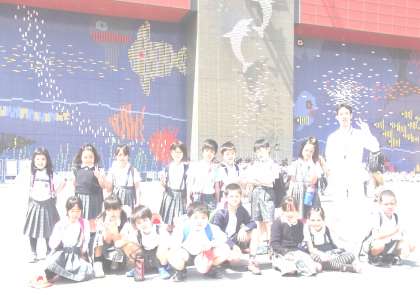 な気持ちにさせてくれました。“じんべいざめ”もゆったりと泳いでいて、とても気持ちよさそうでした。いろいろなお魚や海の生き物たちが何種類もいました。1つ1つの動きがおもしろくて、じっと見ていてもあきない一時でした。さらに、海遊館も新しく変わっていて、小さな“まんた”に触ることができるようになっていました。3年生もみんなも順番に触れさせてもらいました。子どもたちは、やさしくそっとさわっていました。写真や図鑑でしか見たことがなかった海の生き物たちを、実際に見てさわって、貴重な体験になったと思います。
