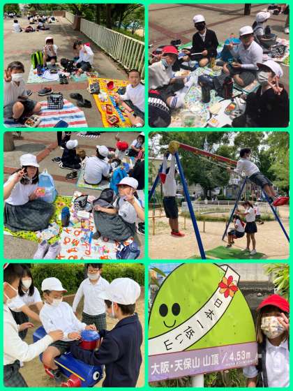お弁当は、日本一低い山で食べました。時間たっぷり遊んで帰ることもでき、帰りの電車では疲れ切っている様子でした。4年生と協力してしっかり回ることができ、充実した一日になりました。
