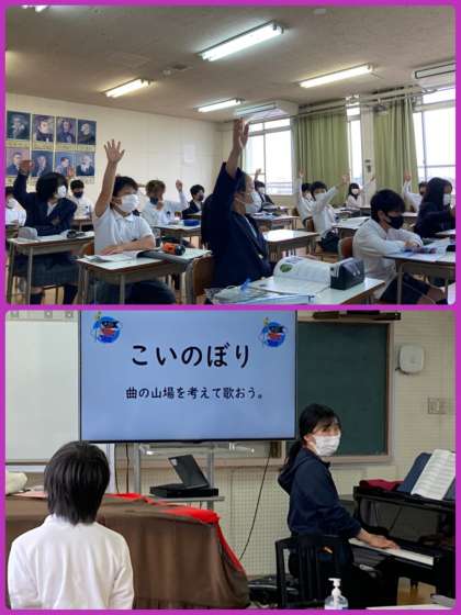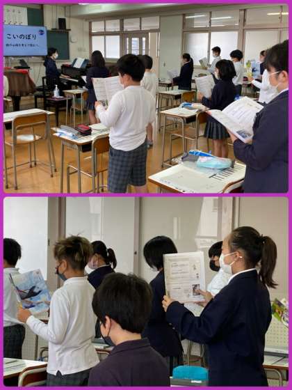5年生は音楽で、曲の山場がどこにあるのか考えました。山場に向かって、どのような歌い方をすればよいのか学習して歌いました。