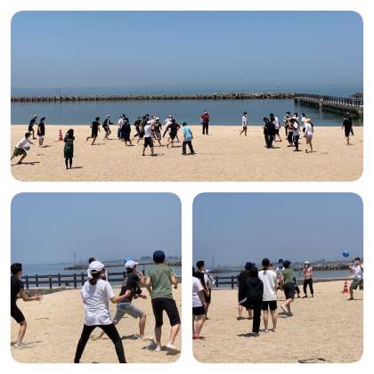 白熱の砂浜ドッヂボールの次はカッター体験です。