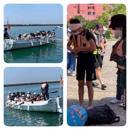 「櫂を前に、いーちにっ。そぉーれっ!」掛け声を合わせて、動きを合わせて、心を合わせないと、進みません。