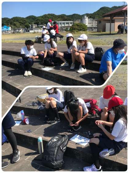 散策で見つけた貝殻やシーグラスを使って、アクセサリーを作っています。みんな大変真剣に取り組んでいます(^ー^)