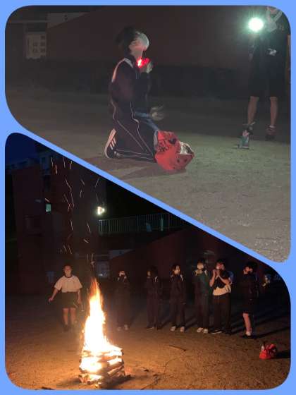 昨夜はキャンプファイヤーで、盛り上がりました。