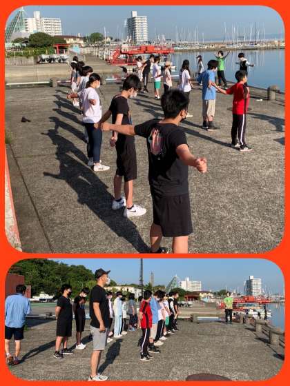 使った施設の片付けも終わり、今から、浜辺と海の活動です。