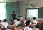 7年生の3時間目の授業は1組英語、2組国語でした。両クラスとも電子黒板を使って授業をしていました。