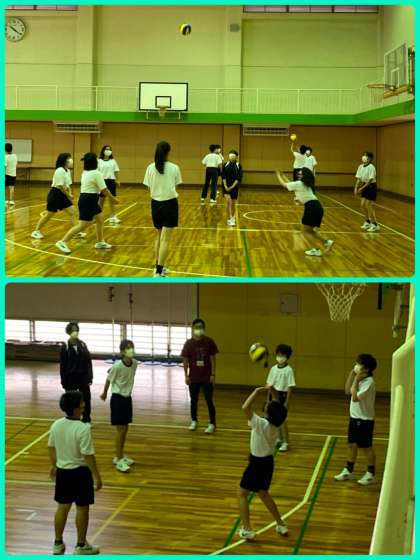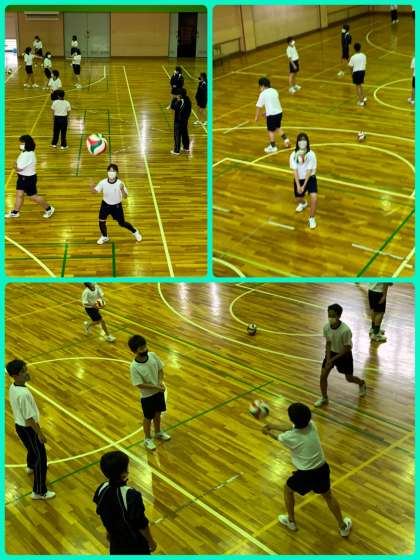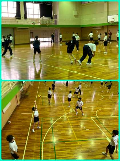今年度より、7・8年生は合同で体育の授業を行っています。6月は、バレーボールをしていきます。初回は、円陣パスの練習をしました。ボールを落とさずに、素早い身のこなしでつなぎ合いました。