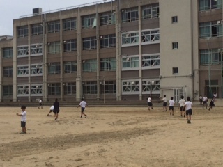 6月中旬で本格的な梅雨の時期です。 朝からポツポツ雨がふっていましたが、3時間目の休み時間の時には止んでいて、元気にグランドで遊んでいました。