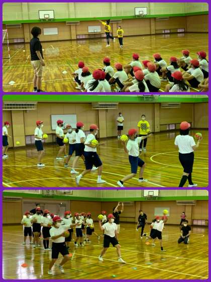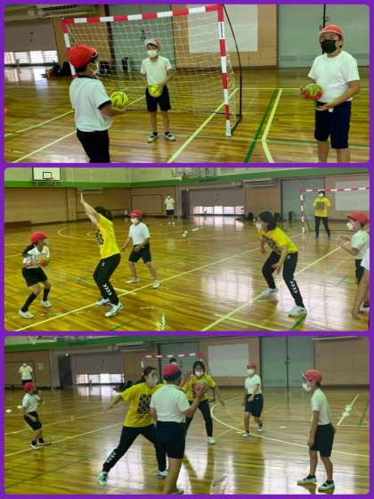 5年生は、大阪ラヴィッツの選手・コーチの方々にお越しいただき、ハンドボールの夢授業を開催しました。運動の基本である「走る」「投げる」「跳ぶ」がすべて詰まったハンドボールです。基本のステップから丁寧に教えていただき、みんながシュートをできるようになりました。見事にゴールを決めた子もいました。